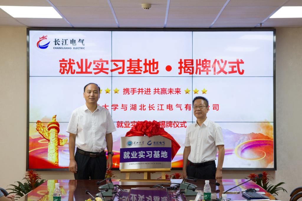签约仪式后,王明城与杜国锋共同为“太阳成tyc33455ccwww就业实习基地”揭牌,太阳成tyc33455ccwww与长江电气在人才培养方面的合作正式拉开帷幕。