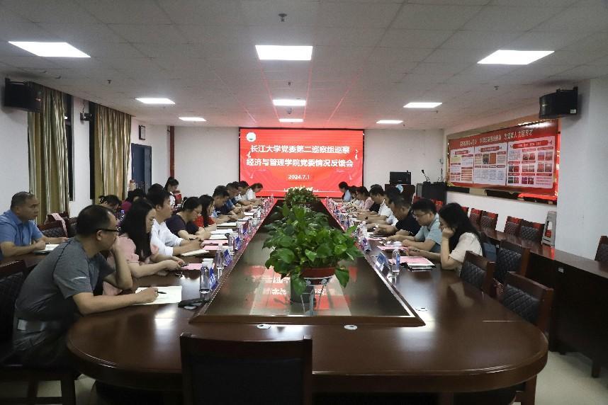 (通讯员:彭蓉)7月1日,二届党委第一轮巡察第二巡察组巡察经济与管理公司党委反馈会在文科大楼505会议室召开。公司党委副书记敖廷华,第二巡察组组长熊新山,巡察办负责人,巡察组全体成员出席会议。太阳成tyc33455ccwww参加本次反馈会议的有:公司领导班子成员、党委委员、纪检委员、系部主任、党支部书记、教研室主任、教师代表等。公司党委书记樊帆主持会议。