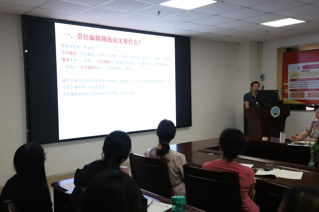 (通讯员:杜昊文)6月18日下午,公司副经理裴潇教授、刘玉成教授于公司文科大楼505进行了题为《学术论文的写作:从构思到发表》《论文评审看什么——基于责编和外审专家视角》的讲座,公司全体研究生参加讲座,康玉梅副教授主持了本次讲座。