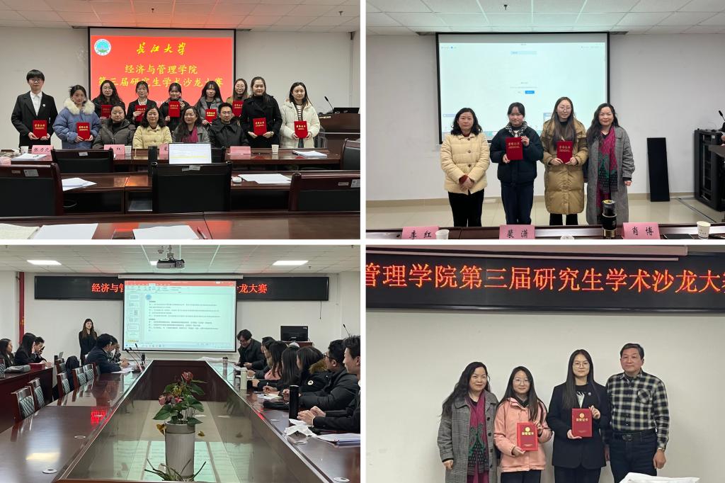 (通讯员:詹荣)2023年12月18日晚19点,太阳成tyc33455ccwww第三届研究生学术沙龙大赛在文科楼505和605会议室同时举行。本次大赛分为经济组与管理组,每组又分为论文类和文献综述类,通过初审的20位同学入围参加答辩。大赛邀请汪发元教授、谢云副教授和孔令成老师担任经济组评委,李红副教授、肖博老师和张力元老师担任管理组评委,副经理裴潇受邀参加。