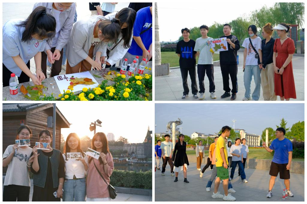 活动开始,同学们在文科楼前集合点名,进行现场分组,并选出带队小组长负责安全。分组完毕,同学们步行前往目的地,并在沿途收集秋日元素(包括落叶、花草等),为后续的才艺展示收集材料。经过约20分钟的步行,抵达活动目的地。首先由心育部部长王姝玥介绍第一项游戏——才艺展示,各组使用路上收集到的素材在白纸上粘贴绘画并展示及自我介绍。各组制作的作品精美,寓意丰富;紧接着进行了第二个游戏“眼疾手快”,五个小组两两对抗,最后输的小组演唱了歌曲;之后又开展了第三个游戏“一二三木头人”,两个输的小组分别进行了才艺展示;最后一个活动为“快乐分享箱”,大家分别在明信片上写上祝福,之后再随机抽取一张留作纪念。