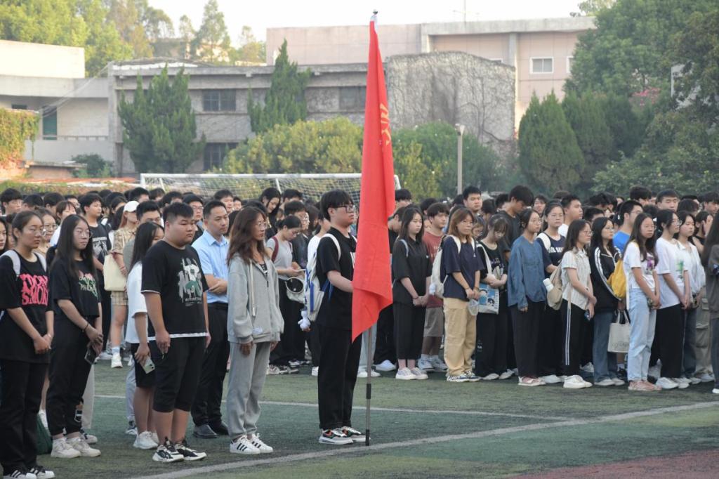 秋高气爽、晨光熹微。伴随着雄壮激昂的国歌,五星红旗徐徐升起,迎风飘扬。升旗礼毕,降半旗,全体成员默哀一分钟。“九一八事变警醒着中华儿女要励志图强,砥砺前行,在奋斗中担起时代重任,在千帆竞发中勇立潮头。”员工代表——会计12101班彭文桦同学以《用奋斗描绘时代底色,用青春奏响奋斗之音》为主题在国旗下发表演讲。随后,学工办主任叶星老师针对开学初期安全事故高发的情况,向全体同学进行了安全警示教育,呼吁大家要加强安全意识,保护自身合法权益不受侵害。