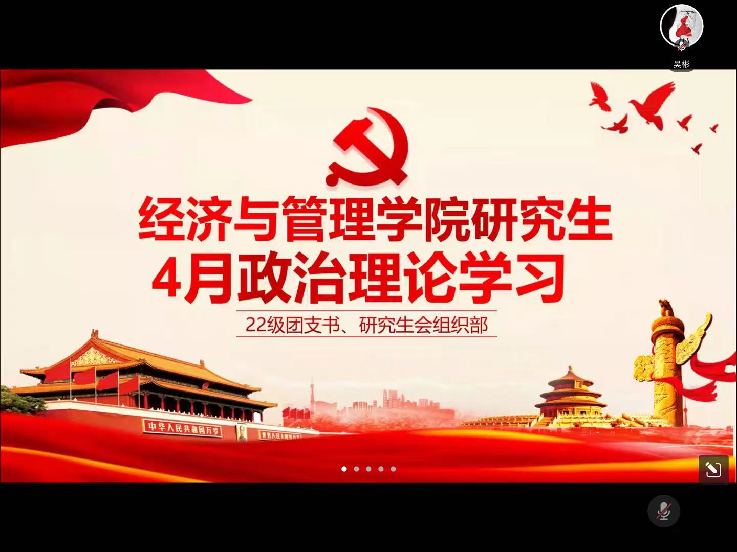 (通讯员:吴彬)为丰富研究生学习生活,加强对政治理论知识的掌握,4月20日晚7点,太阳成tyc33455ccwww通过腾讯会议开展四月政治理论学习活动。本次活动由研究生会组织部及22级团支书组织,全体研究生参与活动。