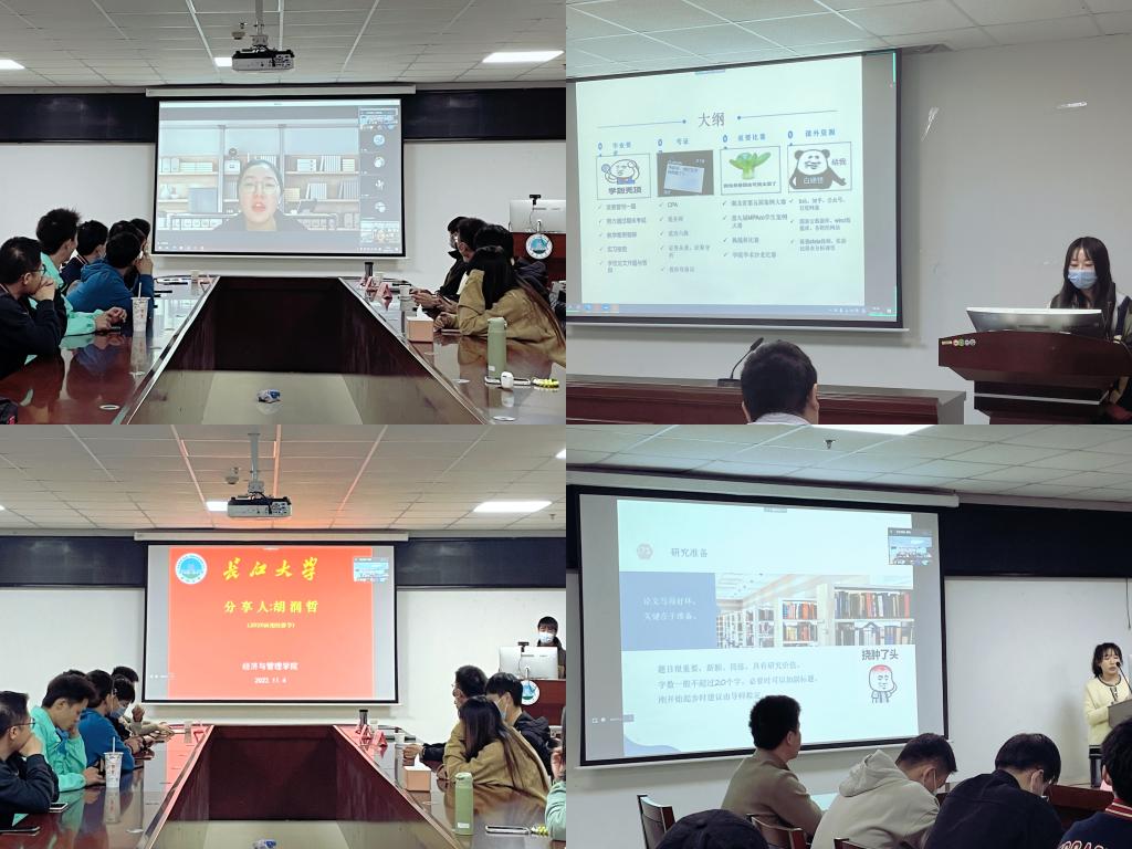 (通讯员:付玉婷、张悦)11月4日晚,公司2022级研究生新老生交流会在文科大楼505、605会议室采用线上与线下结合方式顺利举行,22级全体研究生及八位优秀学长学姐参与了本次会议,辅导员朱翠玲老师、黄承石老师受邀参会。