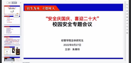 本次专题会议有助于提高同学们的安全防范意识、保障同学们的生命以及财产安全,使同学们能够以最好的精神面貌迎接党的二十大胜利召开。