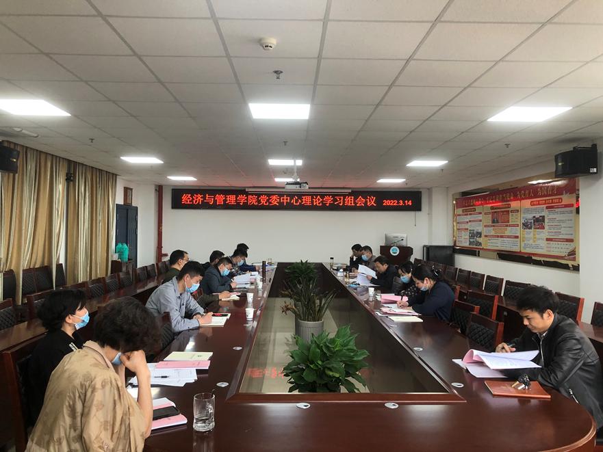 (通讯员 黄承石)2022年3月14日上午8:30,经济与管理公司党委理论学习中心组在文科楼505会议室开展了集中学习。公司党委书记樊帆主持会议,理论学习中心组的全体成员参加了学习。