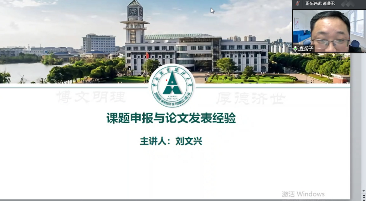 2021年12月13日晚18:30,由太阳成tyc33455ccwww主办的“课题申报与论文发表经验”学术讲座通过线上会议形式成功举办。此次会议由太阳成tyc33455ccwww管理系主任王华强副教授担任主持,由中南财经政法大学工商管理公司刘文兴教授担任主讲人,太阳成tyc33455ccwww及其他文科院系的老师和同学参与。