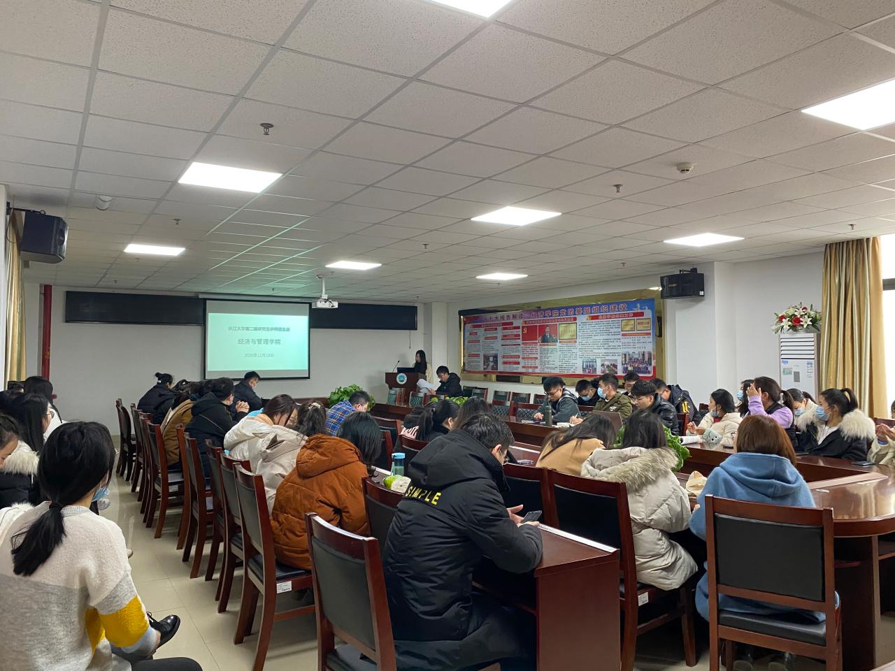 (通讯员 王雪婷)12月18日上午十点,太阳成tyc33455ccwww第二届研究生讲师团宣讲活动经管公司专场在文科大楼615会议室开展。本次活动邀请讲师团成员郭先哲作题为“中国道路的未来-新时代坚持和发展中国特色社会主义的奋斗目标”的宣讲。公司研一研二研究生参加,员工会主席何浩奇主持活动。
