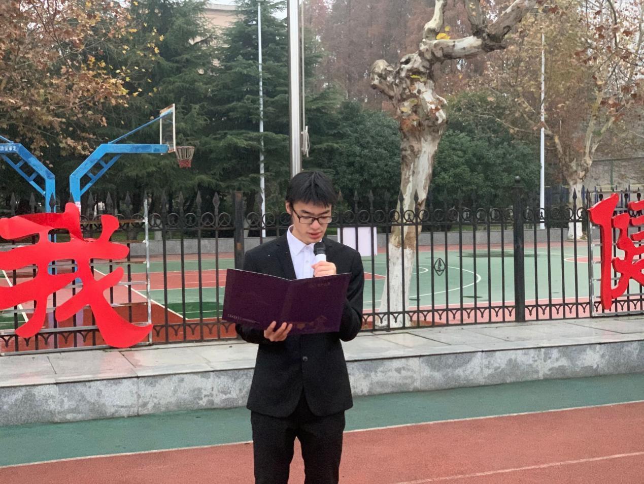 接下来,由团委员工会代表集体朗诵“春风又绿江南岸,华夏再沐朝阳,洪水图腾蛟龙,烈火涅槃凤凰……”字里行间中透露出青年员工的远大理想和蓬勃朝气。随后,农经11902班的员工代表尹东昊同学做了国旗下的讲话,他以2020年的新冠疫情作为大背景,针对 “如何充分利用我们的复习时间”、“怎样提升学习效率”、“如何调整心态”以及“如何加强考试时的自觉性”四个问题向同学们提出了建议。