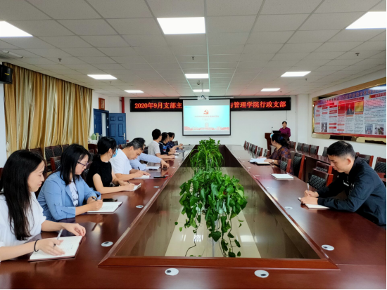 (通讯员 黄承石)2020年9月17日上午九时,经济管理公司教工机关党支部于在文科大楼505会议室召开九月主题党日活动。会议由支部书记胡胜良主持,党委副书记王中梅及全体支部党员同志参加。