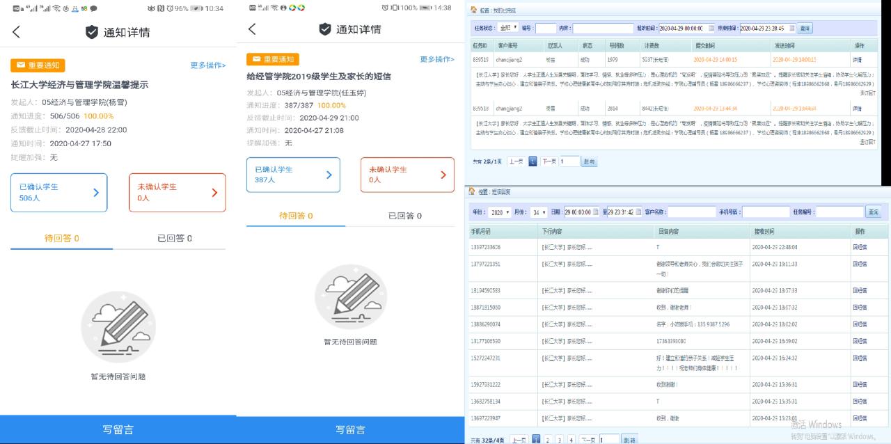 二是建立健全家校联动平台。各年级在以往家校联系平台的基础上,进一步健全和完善家校联系平台,目前各年级均建立了家校QQ、微信等联系平台。同时,公司开通了电信家校协作平台,具备了发送短信、电话通讯等功能。此次,公司利用家校QQ、微信等平台发布了“五一”安全教育提示,通过家长会开展了工作交流并收集了家长的意见,公司通过协作平台给每一位家长发送了心理及安全提示。