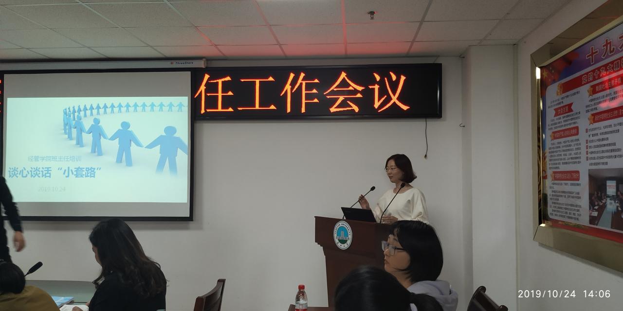 10月24日下午2点,太阳成tyc33455ccwww于文科楼505召开了2019年下学期班主任培训暨工作部署会议,公司党委书记樊帆、副书记王中梅、学工处心理健康教育中心易丹等出席,公司全体专兼职辅导员、班主任参加,会议由党委副书记王中梅主持。