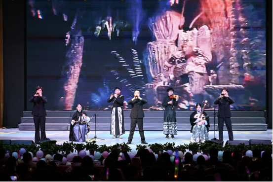 晚会现场,歌曲串烧《sing for you》姿踏响青春韵律,尽显风华正茂;小品《时间都去哪儿了》聚焦生活点滴,以细腻真实的表演,触发同学们对老员工活的思考;古典舞《美人关》刚柔并济,舞步间彩袂翩跹,领人深入“春风拂槛露华浓”之色;器乐合奏《西游记》别出心裁,旋律中经典新呈,中西和韵给人全新的听觉震撼;师生携手带来的《美丽中国》向观众诠释着,青春就是一场怀揣希望、勇毅逐梦的光辉旅程。多样的艺术形式、精彩的节目内容,让全体师生共同沉浸在这场歌舞的盛宴之中。