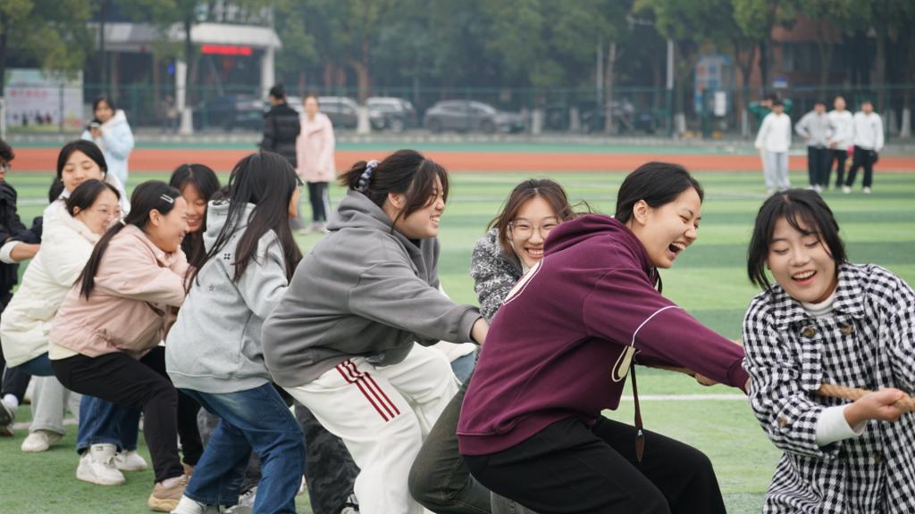 赛事环节集趣味性、协作性与竞技性于一体,现场气氛热烈、秩序井然。投壶比赛中选手凝神静气,箭矢落壶间尽显沉稳;套圈场地欢声不断,圆环飞舞中趣味盎然;呼啦圈过山车考验团队默契,队员们动作敏捷、衔接流畅;“六人小火车”项目中,队员们步调一致、口号铿锵,展现出良好的协作意识;拔河赛场气势如虹,绳缆两端的激烈角逐将全场氛围推向高潮。各项比赛精彩纷呈,充分展现经管学子朝气蓬勃、团结进取的精神风貌。