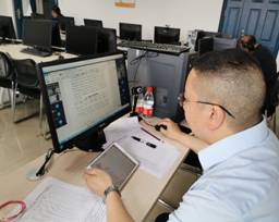 答辩当天,29个答辩组长均统一安排在公司5个实验室,根据疫情防控要求,做好测温和消毒准备工作,并保持适当的距离。答辩组长负责组织本小组的答辩工作并做好录屏。老师们开玩笑说,“感觉自己有点当主播的范儿。”由于经管公司参加答辩的员工较多,为了减少员工等待时间并尽快完成答辩,流程设计得十分紧凑,答辩评委全天候坚守电脑前,认真听取员工汇报,提问和给出修改建议。教学办工作人员负责为评委老师们做好后勤服务,订盒饭,倒茶水,解决技术问题。一天下来,评委老师们坐得腰酸腿痛,但大家都毫无怨言。商贸系李诗珍教授说,“在线答辩的确比以往线下答辩要累,但看到同学们克服疫情影响,从毕业论文撰写和答辩中得到满满的收获,感到无比欣慰,根本不觉得累了。”