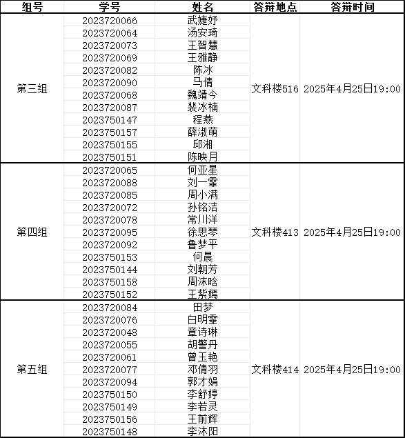 答辩小组分组安排