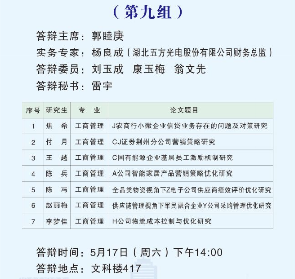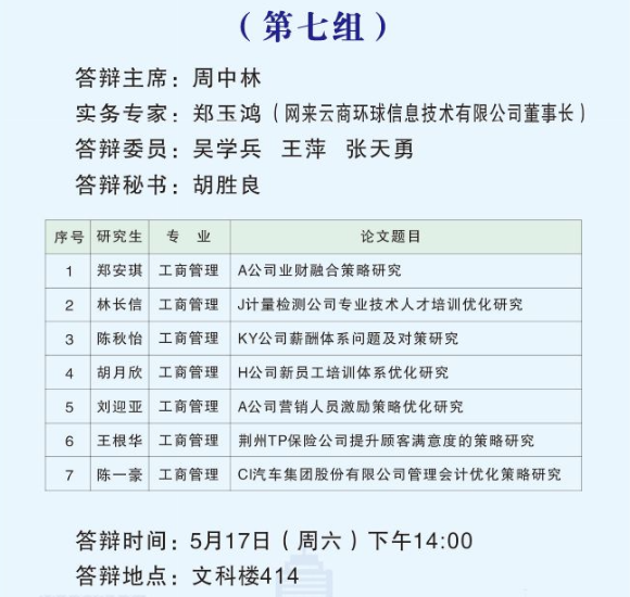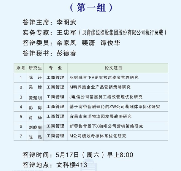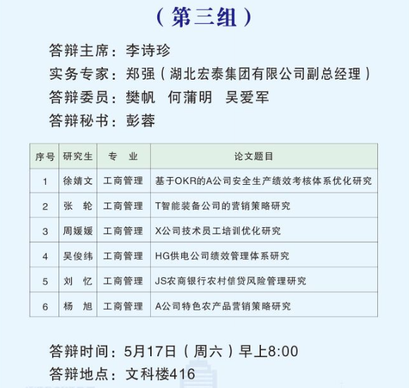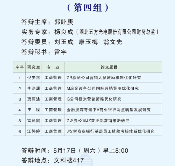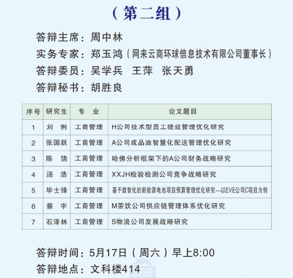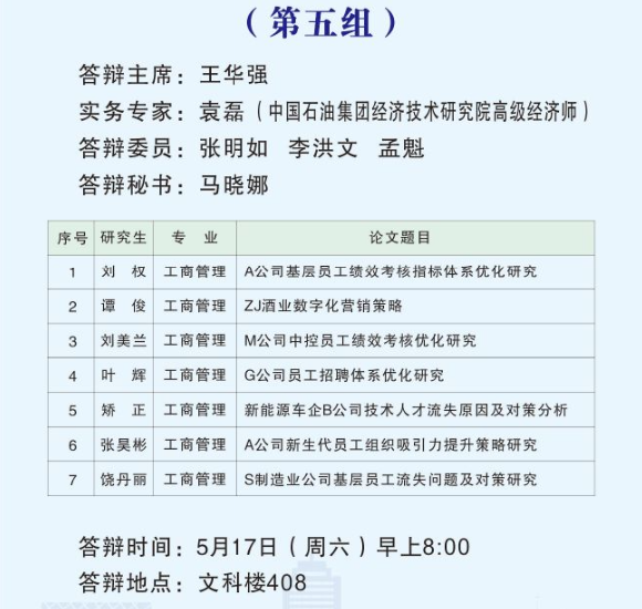 根据公司研究生教育管理工作安排,2025届MBA硕士研究生学位论文答辩工作于2025年5月17日举行。