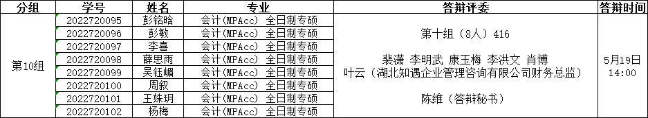 答辩小组分组安排