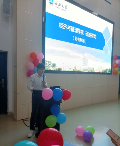 会议伊始,由班主任代表涂雷进行2021年经管公司考研录取情况介绍。他先从考研录取率着手,介绍目前考研形势严峻,接着分享了若干考研典型案例,建议同学们能够全面考虑自身情况,沉着应“研”考,谨慎择校。