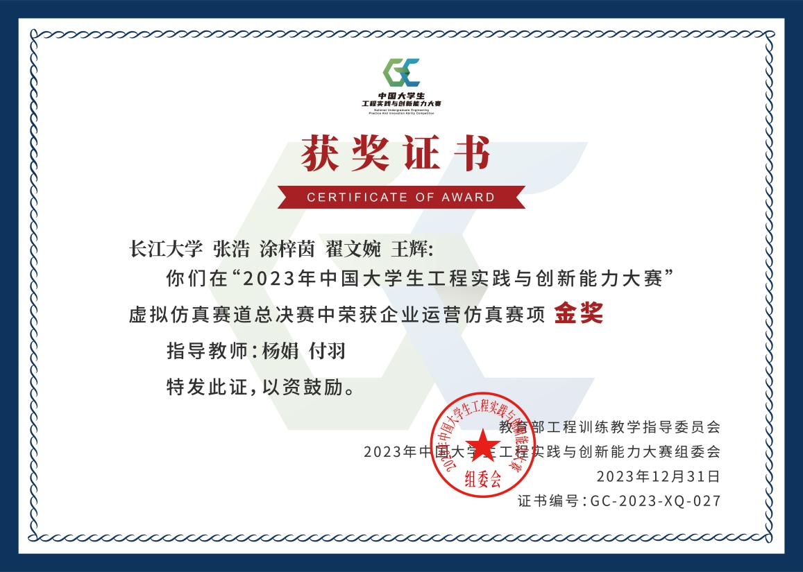 1,2023年中国老员工工程实践与创新能力大赛(金奖)