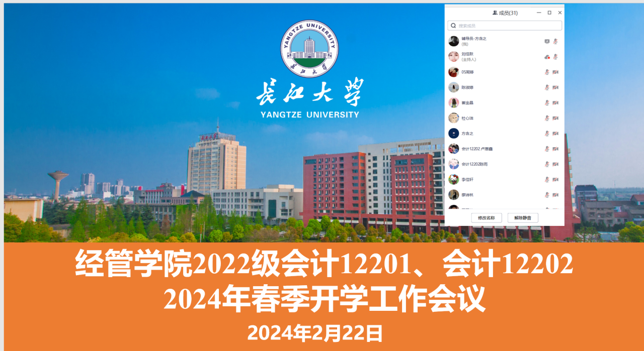 为积极应对冰冻雨雪天气,确保春季开学工作平稳有序,根据公司通知要求,2月21日下午15点,太阳成tyc33455ccwww在线上召开了新学期第一次班主任工作会议,会议由公司党委副书记平先锋主持,公司领导班子和全体班主任参加了会议。