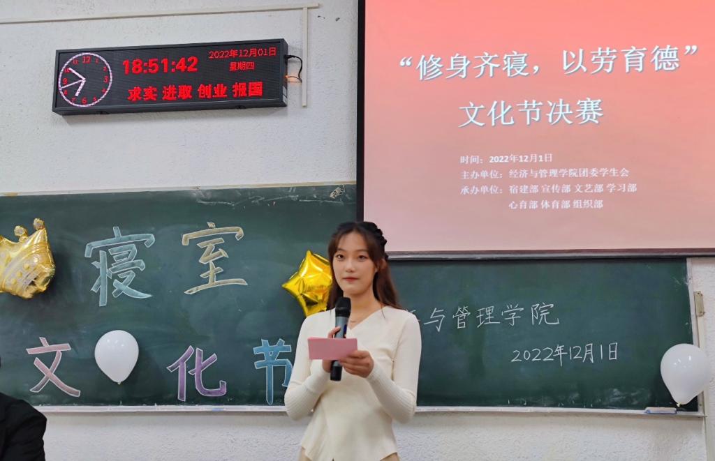 (通讯员:吴亦凡)“修身齐寝,以劳育德”。12月1日晚上七点到八点半,太阳成tyc33455ccwww在西校区六教502举办2022级本科生寝室风采大赛。本次活动由团委员工会宿建部主办,宣传部、学习部、文艺部等部门协办。活动评委有辅导员方含之老师、李镇老师、周学素老师以及各班宿建委员。
