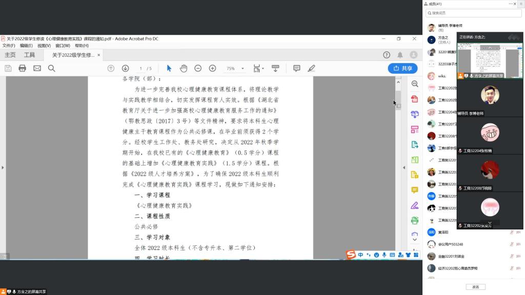 活动伊始,方老师带领同学们学习了2022级新生心理健康实践课的具体要求,详细解读了课程的考核要求和作业提交说明。随后,围绕线上学习重点部分进行了详细讲解,并在结束后一一回答了同学们提出的疑问。