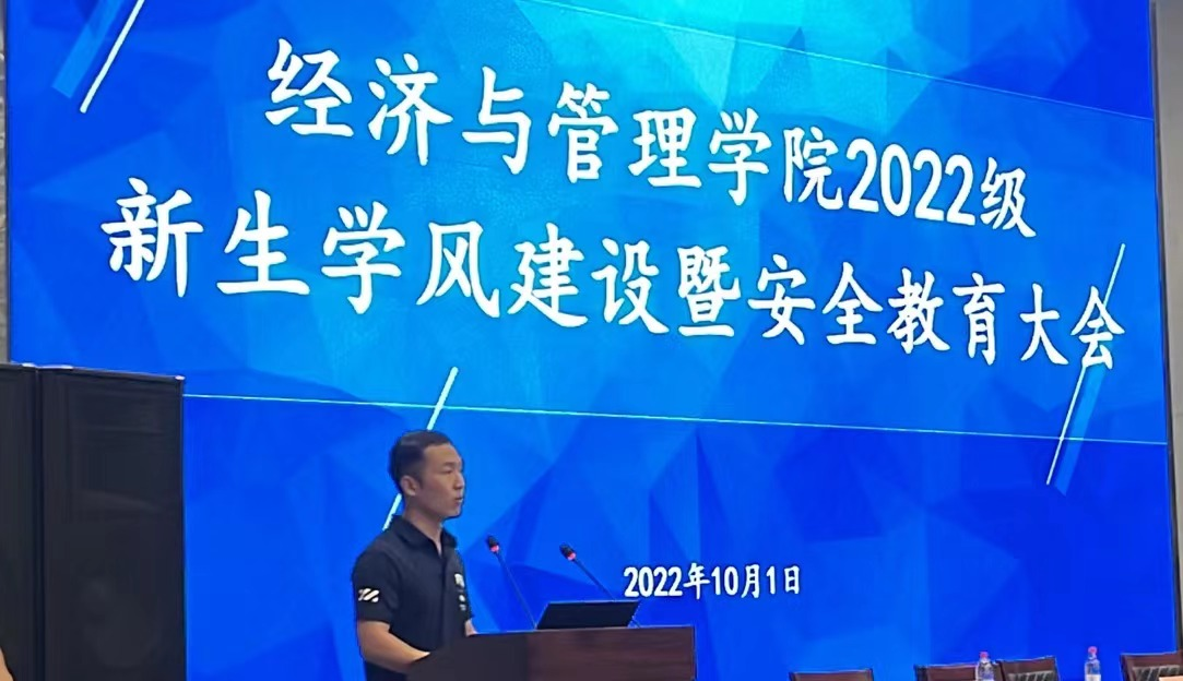 (通讯员:谭玉堂 吴亦凡)金秋送爽,喜迎国庆。10月1日上午,2022级新生学风建设暨安全教育大会在西校区农科大楼报告厅举行。经管公司22级全体员工通过线上线下相结合的方式参加会议。辅导员李博老师主持大会。