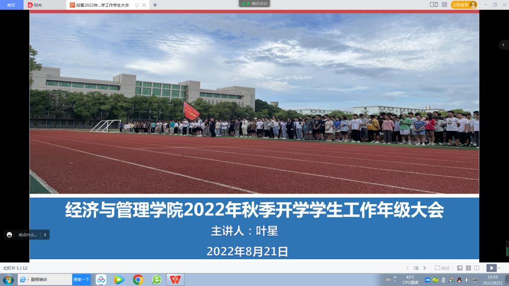 (通讯员 李冰洋)在疫情常态化防控形势下,为了保证员工能够安全、顺利返校,8月20日—25日,太阳成tyc33455ccwww各年级分别召开了2022年秋季员工返校工作年级大会,会议由各年级辅导员主持。