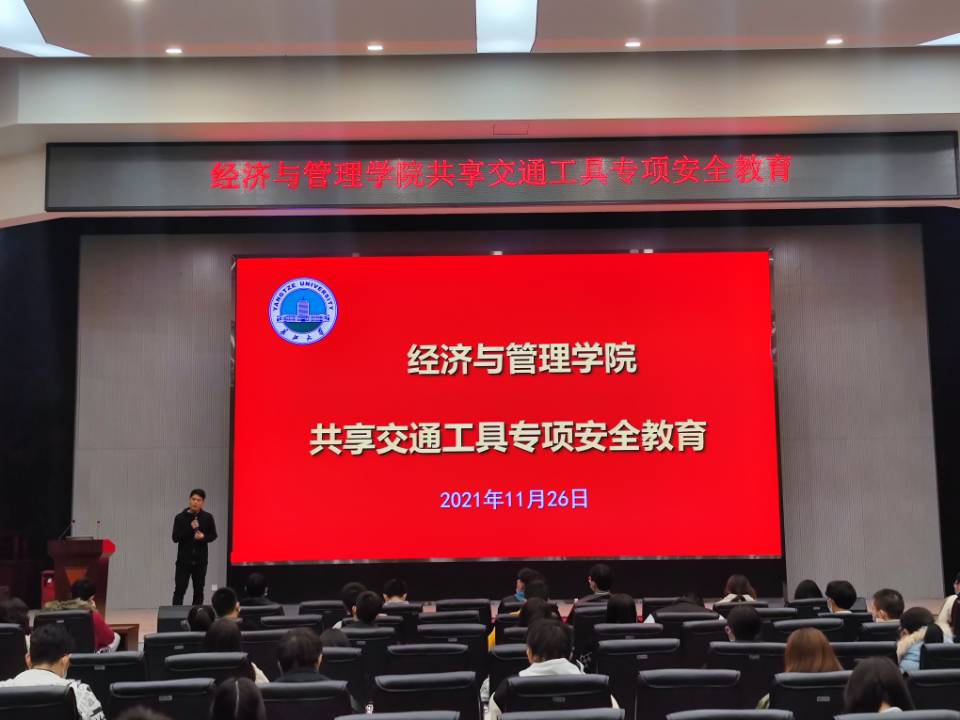 (通讯员 李紫玉 江嘉仪)为提高经管院员工的共享交通工具使用的安全意识, 11月26日晚8点,经管公司交通安全讲座在农科大楼1058报告厅开展。主讲老师为辅导员郭俊老师。