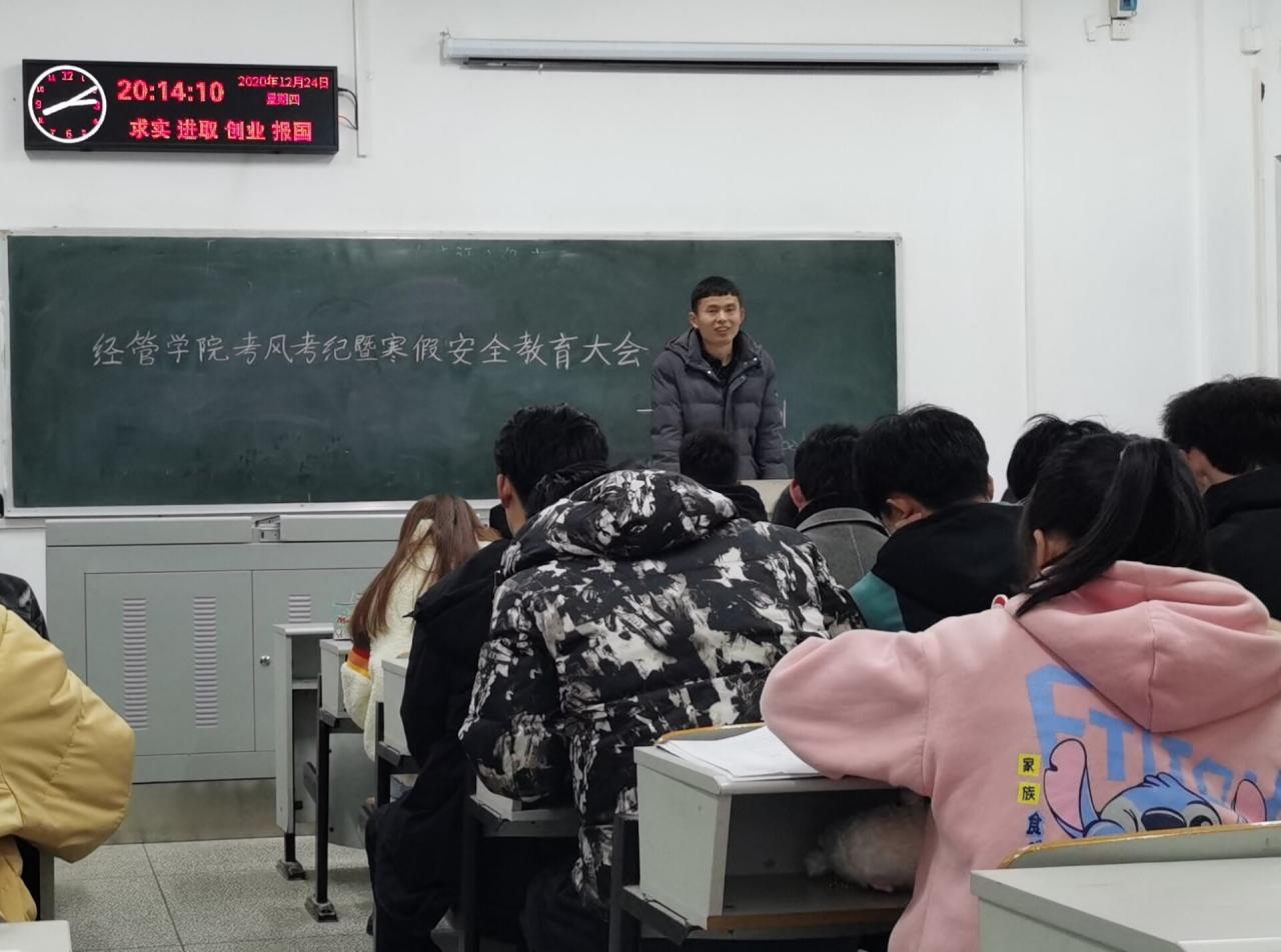 (通讯员 蒋晓涵)12月24日晚19时,太阳成tyc33455ccwww管理工程类和农经类专业2020级新生在西校区7教501教室,召开了本学期考风考纪暨寒假安全教育大会,会议由辅导员叶星老师主持。