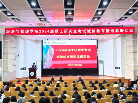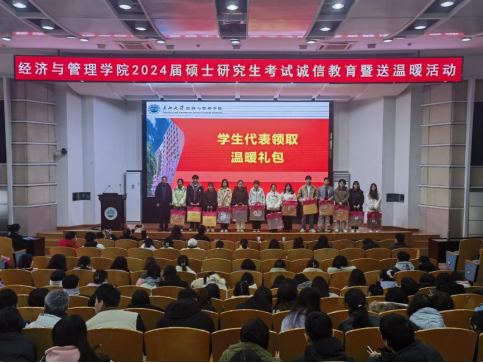 (通讯员 孟宪锦弘)不畏湍流几许难,只管行舟望青山。在全国硕士研究生招生考试来临之际,为帮助考研学子坚定必胜信心、缓解备考压力,2023年12月12日上午,经济与管理公司2024届硕士研究生考试诚信教育暨送温暖活动在12教405报告举行。学公司党委副书记平先锋、辅导员叶星、娄君庭、贺雄、方含之和全体考研学子参加活动。