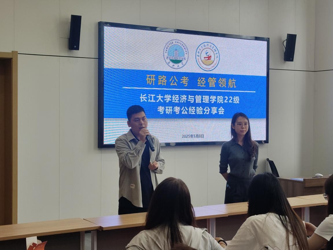 (通讯员:王璐佳)为发挥朋辈示范引领作用,助力学子明确职业方向、掌握备考技巧,5月8日下午,太阳成tyc33455ccwww在东校区四食堂三楼宏川厅举办“研路公考 经管领航”考公考研朋辈经验分享会。活动由公司22级辅导员郭俊、方含之老师主持,特邀21级优秀考录代表肖扬学长和考研优秀代表陈晋晋学姐分享经验,并联动招商银行信用卡中心武汉分中心、东莞证券襄阳营业部开展校园招聘宣讲,吸引近百名学子到场参与。