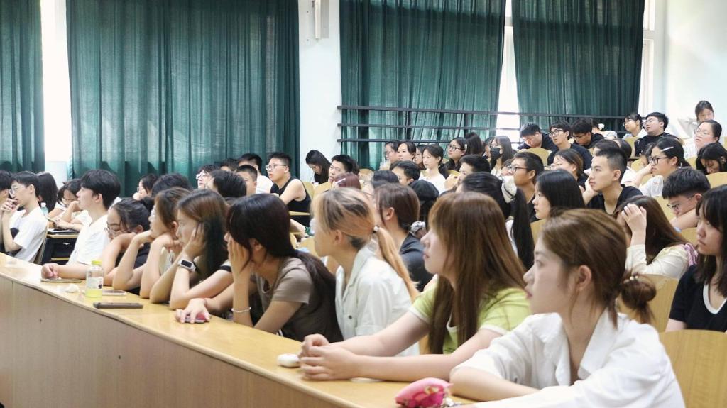 汪芬凭借多年考研英语辅导经验,从阶段性备考规划、经典题型解析、强化复习技巧等多个维度进行了深入浅出地讲解,并结合具体考研真题,分享了实用的复习技巧和方法。针对考研英语中的阅读理解、翻译、写作等重点题型,结合历年真题,详细剖析了命题规律和解题技巧,并分享了高效提升词汇量和语法能力的实用方法。讲座中,同学们认真听讲,不时记录重点内容。