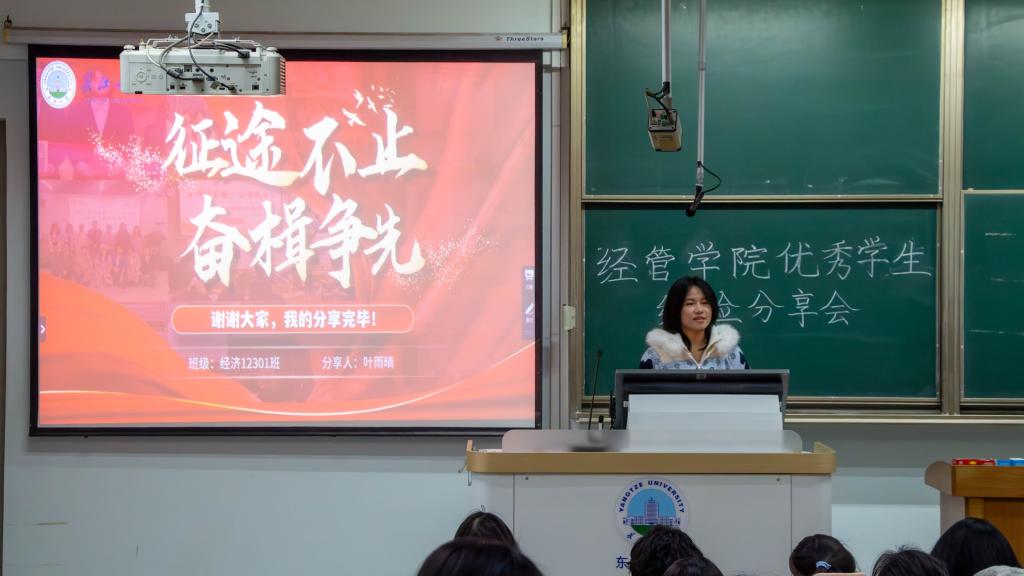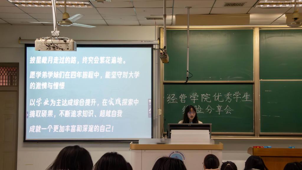 分享会邀请了2022级熊雪景与2023级叶雨晴两位同学担任主讲。熊雪景结合自身在学术科研与学科竞赛中的经验,系统分享了高效学习方法与项目实践心得,强调夯实基础与主动探索的重要性。叶雨晴则从员工干部视角出发,介绍了如何平衡课程学习、社会实践与工作任务,其清晰的规划与务实态度给在场同学留下深刻印象。在随后的互动环节,同学们踊跃提问,两位分享者结合自身体会给予了细致解答。最后,辅导员叶星老师进行总结,勉励同学们找准方向、不懈奋斗。