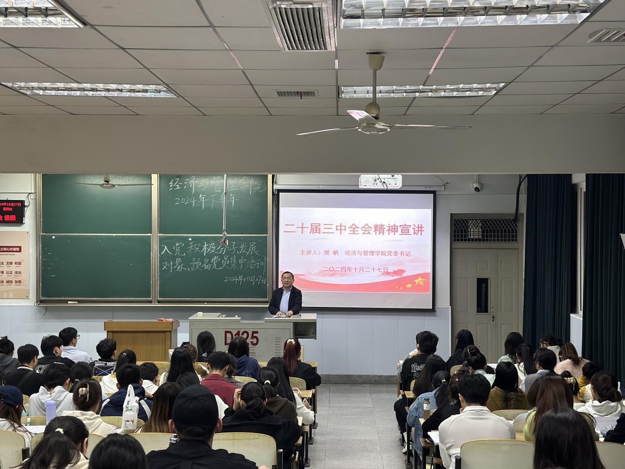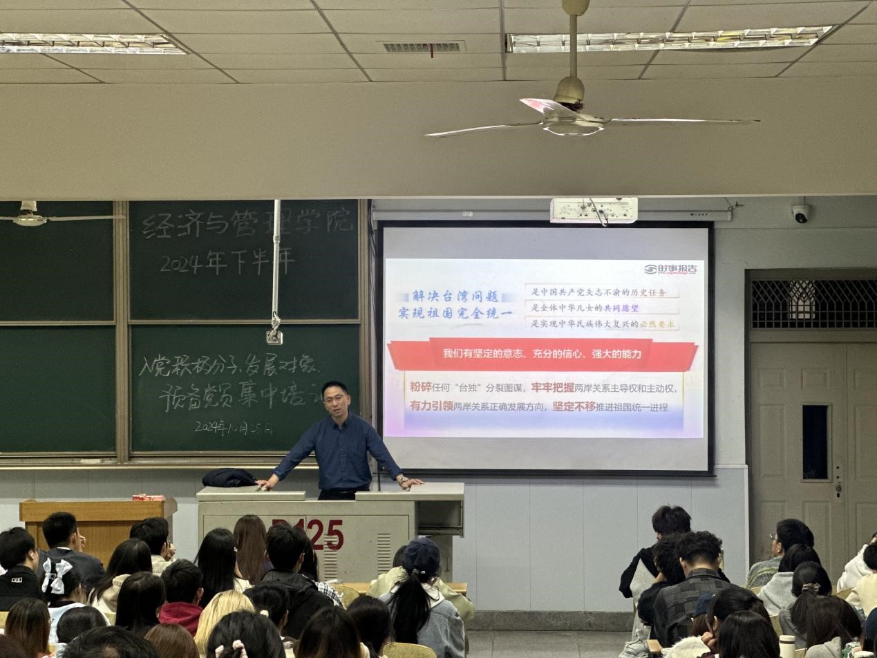 经管公司党委书记樊帆、党委副书记平先锋、辅导员贺雄分别以《党的二十届三中全会精神解读》《砥砺奋进促统一,铸就民族新荣光》《习近平的七年知青岁月》为主题开展集中授课,帮助入党积极分子、发展对象和预备党员深刻领悟“两个确立”的决定性意义,增强“四个意识”、坚定“四个自信”、做到“两个维护”,端正入党动机,确立为共产主义事业奋斗终身的信念。
