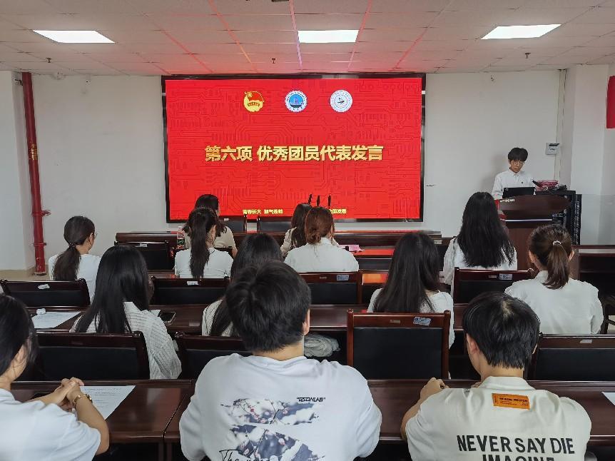 王奕凯同学作为新团员代表发言。他表示,加入共青团这一光荣的组织,是人生道路上一次更新更高的起航,新团员们要起好模范带头作用,用实际行动实践自己的入团誓言。白合同学作为优秀团员代表向新入团的14名同学表示祝贺。同时,他告诫新团员们要牢记入团誓词,志存高远,刻苦学习,展现新时代中国青年的担当!