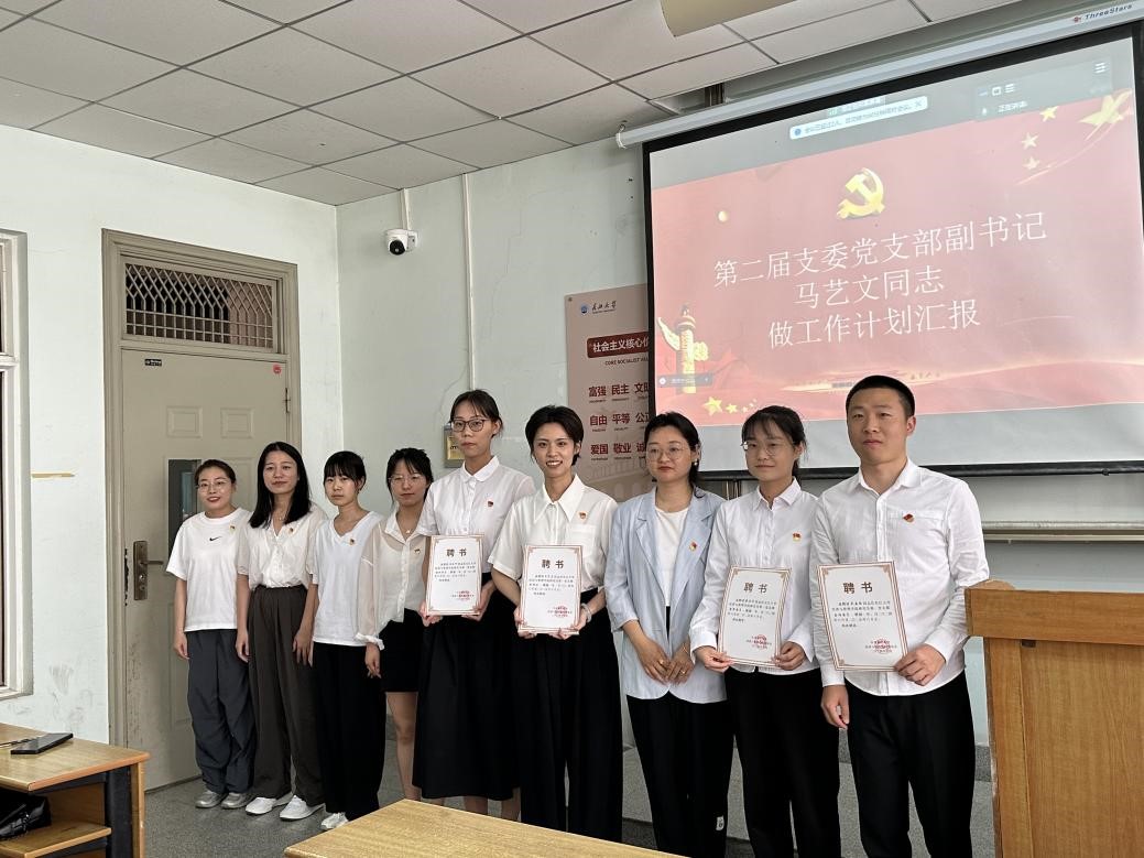 (通讯员 吴孟怡)“吾日三问吾身”让党纪学习教育“常”相伴。2024年6月18日下午,研究生第一党支部在13教B-110召开六月主题党日活动暨支委换届大会,党支部书记任玉婷、全体员工党员参加。