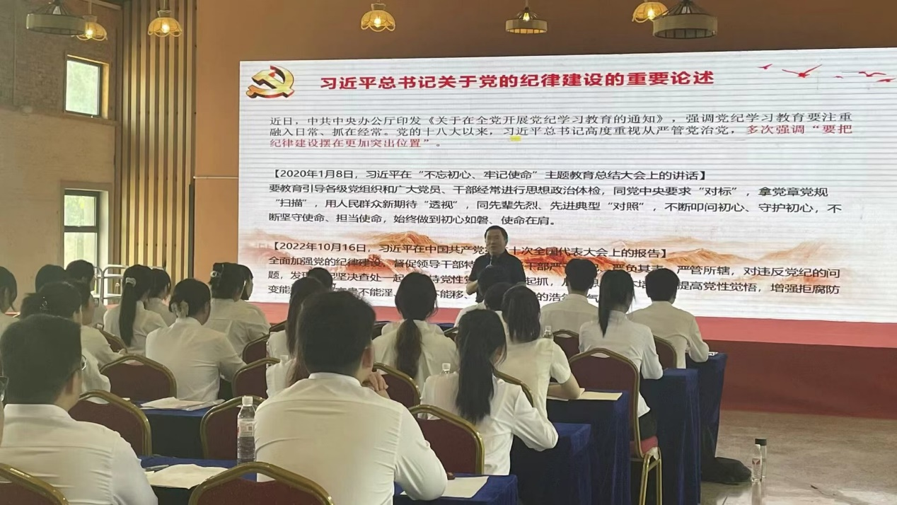 公司党委书记樊帆就本次主题党日活动做出总结,他说抗洪精神不仅体现了对抗自然灾害的勇气与决心,更是中华民族坚韧不拔、敢于胜利的精神象征。最后,樊帆在全体员工党员中开展党纪学习专题教育,对《中国共产党纪律处分条例》新修订部分做了重点梳理和解读,他强调党纪学习教育要持续化和常态化,更是党员日常行为规范的严格要求,党纪学习有助于员工党员今后把握正确的人生方向;并结合本次抗洪精神的学习,鼓励新时代青年党员铭记历史、缅怀先烈、不忘初心、牢记使命,成为有理想、有担当、能吃苦、有作为的青年。