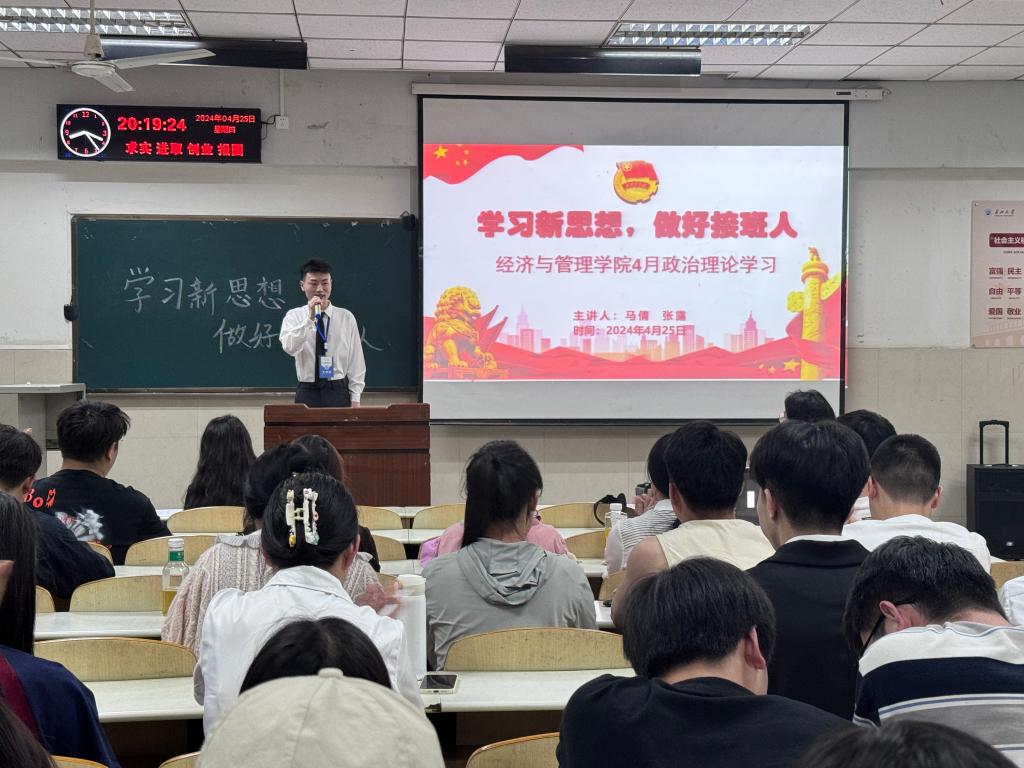 (通讯员 何小艳)为深入学习贯彻习近平新时代中国特色社会主义思想,提升公司研究生政治理论素养,引导员工做党的创新理论坚定信仰者和忠实实践者,坚持学思贯通、知行统一,太阳成tyc33455ccwww于4月25日晚19点,在12教102教室开展四月政治理论学习活动。本次活动由研究生会组织开展,全体2023级研究生到场参会,2022级、2021级研究生通过腾讯会议线上同步参会。
