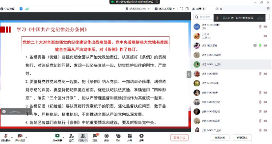 随后,朱梦雨同志带领全体同志围绕《中国共产党纪律处分条例》进行学习。她指出,要深刻领会党中央修订《中国共产党纪律处分条例》的重要意义,从担负全面从严治党政治责任,加强全方位管理和监督,强化监督执纪问责,引导激励在座党员同志遵规守纪、敢于担当、积极作为。接着,朱梦雨同志领学了省委决策部署相关内容。她从“党员干部如何贯彻四下基层”和“四下基层活动落实原则”两个方面,进行了深入解读。