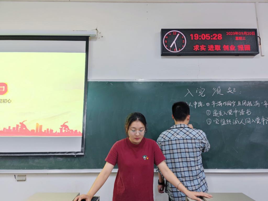 (通讯员:饶倩竹/文 崔佳旺 彭文桦/摄)扬帆起航,青春向党。为增进2023级新生对中国共产党的理解和认识,提升思想政治觉悟、端正入党动机,引导新生积极向党组织靠拢,近日,会计系本科生党支部于西校区7教406、407分批次有序开展2023级新生入党启蒙教育活动,活动由支部副书记洪雨洁主讲,支部支委和2021级全体员工党员参加。