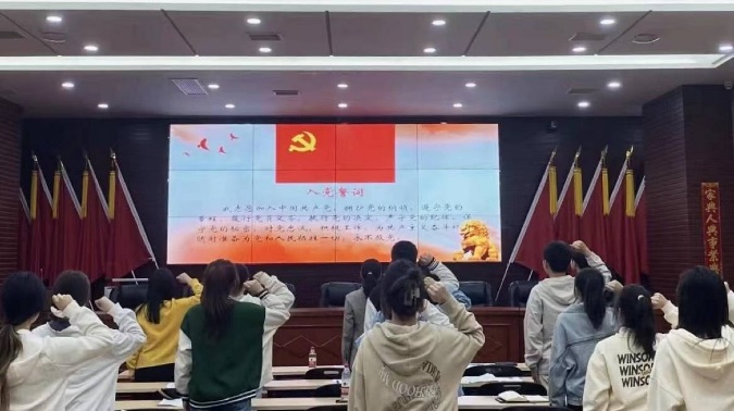 在理论学习阶段,牟玉银同志带领全体党员同志学习党的二十大相关报告。通过讲解二十大代表方勤的榜样事例,同志们深刻领会“探寻中华文明,传播传统文化”的思想和责任担当。同时牟玉银同志以优秀传统文化为切入点,介绍了“荆楚”名称的由来和楚文化发展历程,大家对荆楚大地灿烂历史文化的认识不断加深。最后牟玉银同志号召大家要站在新的历史起点,学习习近平总书记的报告,团结大家,讲好中国故事、湖北故事,传播好中国声音、湖北声音,展现可信可爱可敬的中国形象、湖北形象。随后,进入情景表演部分,2021级拟发展对象充分挖掘荆楚文化内涵,通过朗诵楚辞和演绎荆楚英雄故事两种形式来展示“荆楚先人,筚路蓝缕”的独特意蕴,弘扬“挺身而出,舍生忘死”的无畏精神,彰显“传承美德,勇担重任”的时代担当。紧接着是2020级拟发展对象组织的传声筒游戏,在一次次向身后同志传诵荆楚文化丰富内涵的过程中,除了竞赛争分夺秒的紧张心情,大家的欢声笑语也接连不断。至此,伴随着动人的红歌旋律互动环节拉下帷幕。