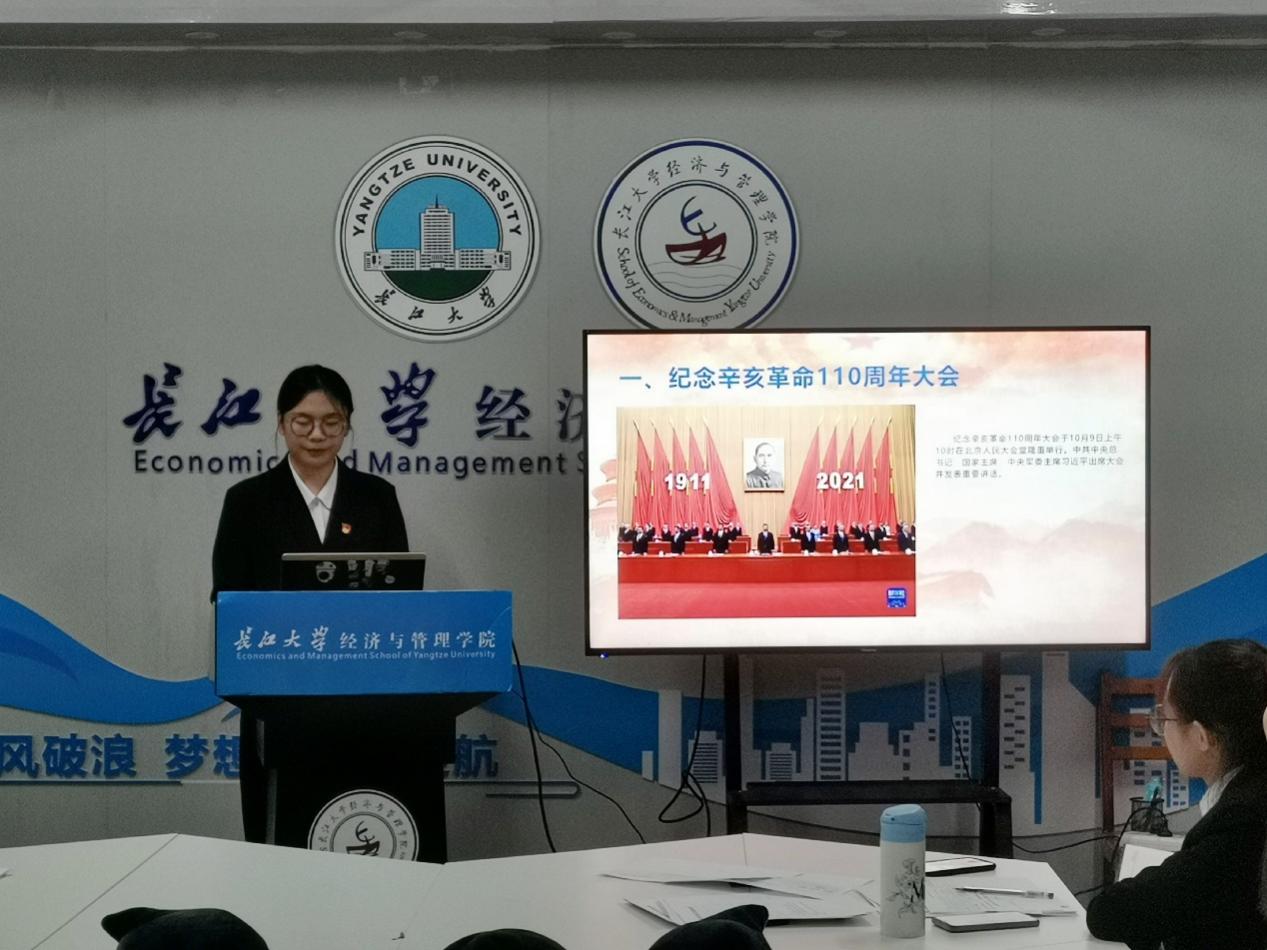 (通讯员:李丹萍)2021年11月10日下午3点,太阳成tyc33455ccwww管理工程系本科生党支部在新风二楼会议室召开十一月主题党日活动。此次活动的主题是“学习纪念辛亥革命110周年大会讲话”。参会人员有党支部书记李博、员工党员与预备党员。