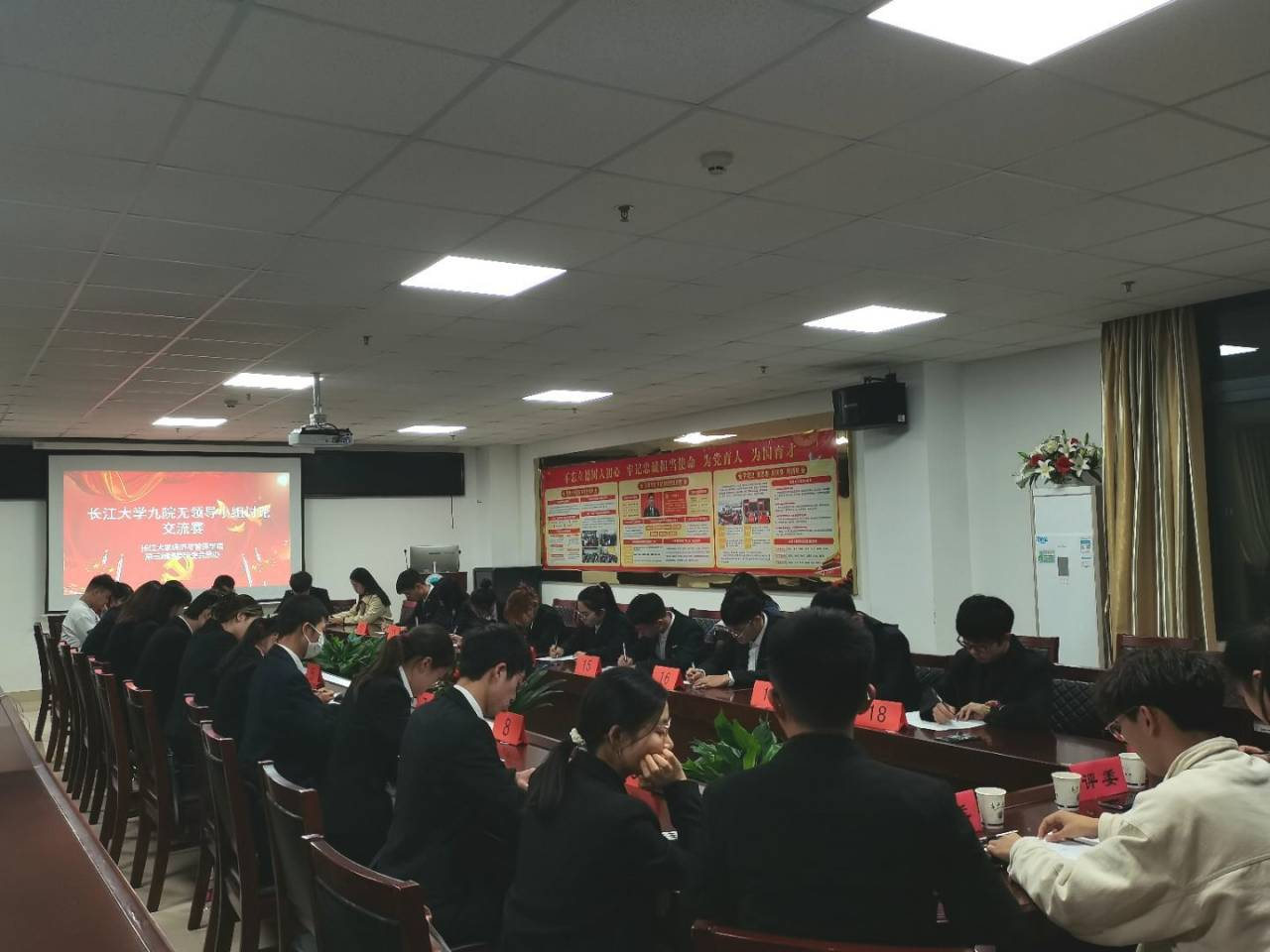 (通讯员:吕梦雪、贾盼盼)为了增强组织凝聚力,提高个人表达能力,促进院与院之间的交流学习,2021年10月23日晚7时30分,太阳成tyc33455ccwww第三届团委员工会在文科大楼505举办了九院无领导小组讨论交流赛。本次交流赛邀请到李豪杰、张馨月、杜地娟、赵晗贝等九大院团委员工会主席团成员作为评委,从各公司的院级选拔赛中脱颖而出的团委员工会成员参加此次比赛。