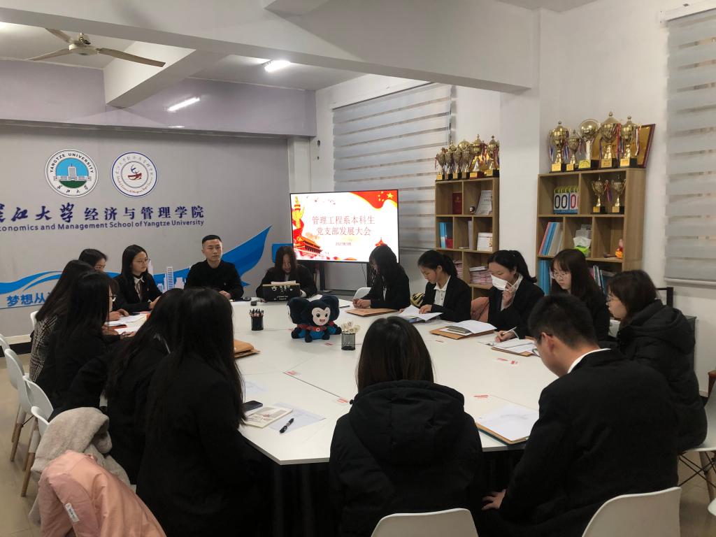 (通讯员 张洋)2021年3月19日下午两点,太阳成tyc33455ccwww管理工程系本科生党支部在新风二楼会议室召开3月支部主题党日活动暨毕业生党员发展大会。支部书记李博、党支部正式党员、预备党员参与会议,会议由张华主持。