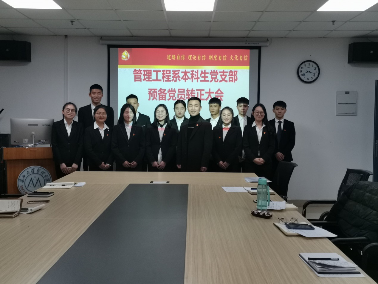 会议最后,全体党员同志合影留念,2019年下半年管理工程系本科生党支部转正大会圆满结束。