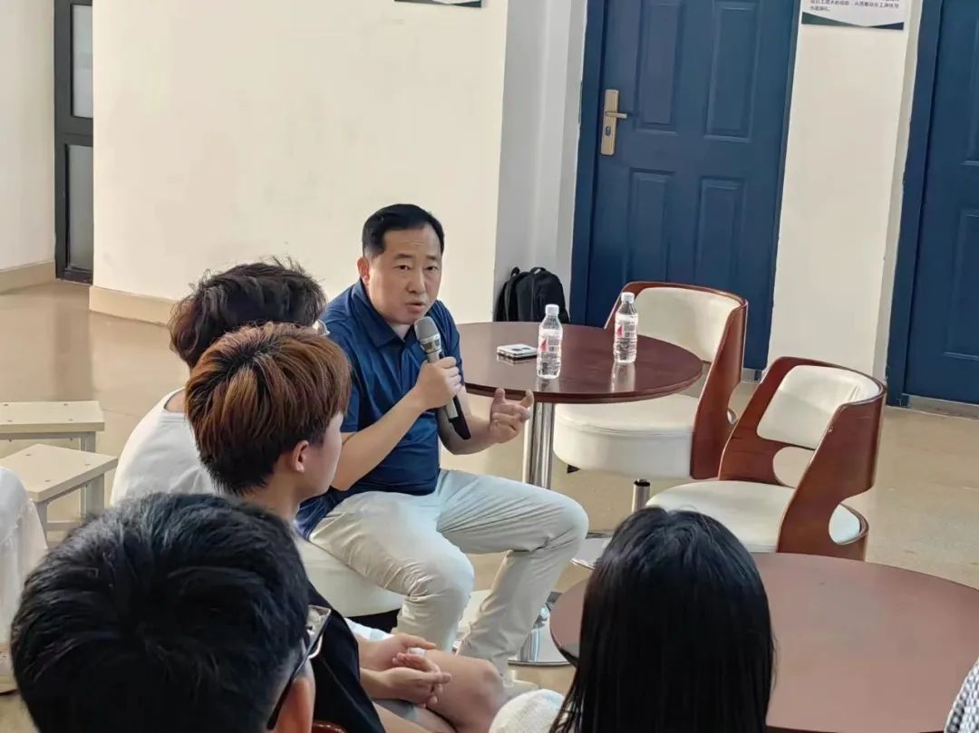 交流讨论环节中,同学们积极踊跃发言。对于同学提出的“您是如何一直保持创业热情”这一问题,刘运红亲切回答到:“敢于踏出舒适圈的勇气和拥有跟随社会市场变化的能力,是我能不断保持创新创业的热情的原因。”