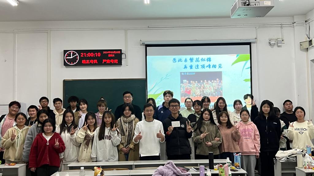 3月21日晚,在辅导员的带领下,新转入公司的同学们分批进入新班级教室,和新班级的同学热情地打了一个照面。新同学们简单介绍自己后,各班班长便代表全体同学给他们戴上了小红花手环,表达了对新同学的热烈欢迎和对未来学习生活的美好期待。
