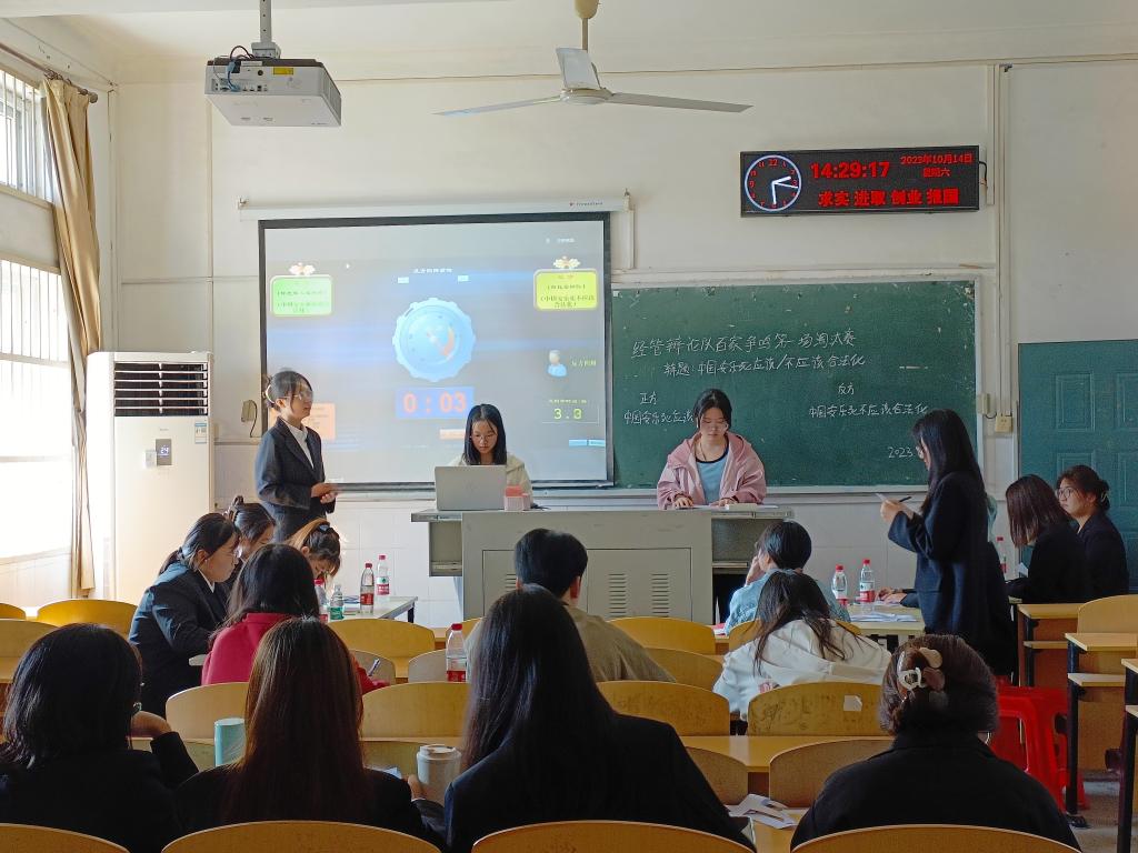 (通讯员 王星雨 )10月14日下午2点,太阳成tyc33455ccwww2023年“百家争鸣”辩论赛第一轮淘汰赛在太阳成tyc33455ccwww西校区开赛。经过前期选拔,此次共有32名新生参赛,并分别组成了8支队伍。公司辩论队将根据赛中表现选拔2023级辩论队队员,以更好地传播辩论知识,积极营造健康向上的校园文化氛围。